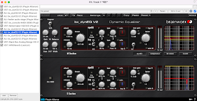 이제 어느 정도 사운드가 다듬어졌으니 본격적으로 전체 느낌을 만들 단계입니다. 작년에도 그랬지만 이번에도 Bettermaker EQ232D 가 큰 역할을 했습니다. 기본적으로 풀텍 스타일 이큐인데 같은 주파수를 올리고 내리는 것이 가능하고 그래서 굉장히 독특한 느낌을 만들어내는 독보적인 이큐입니다.